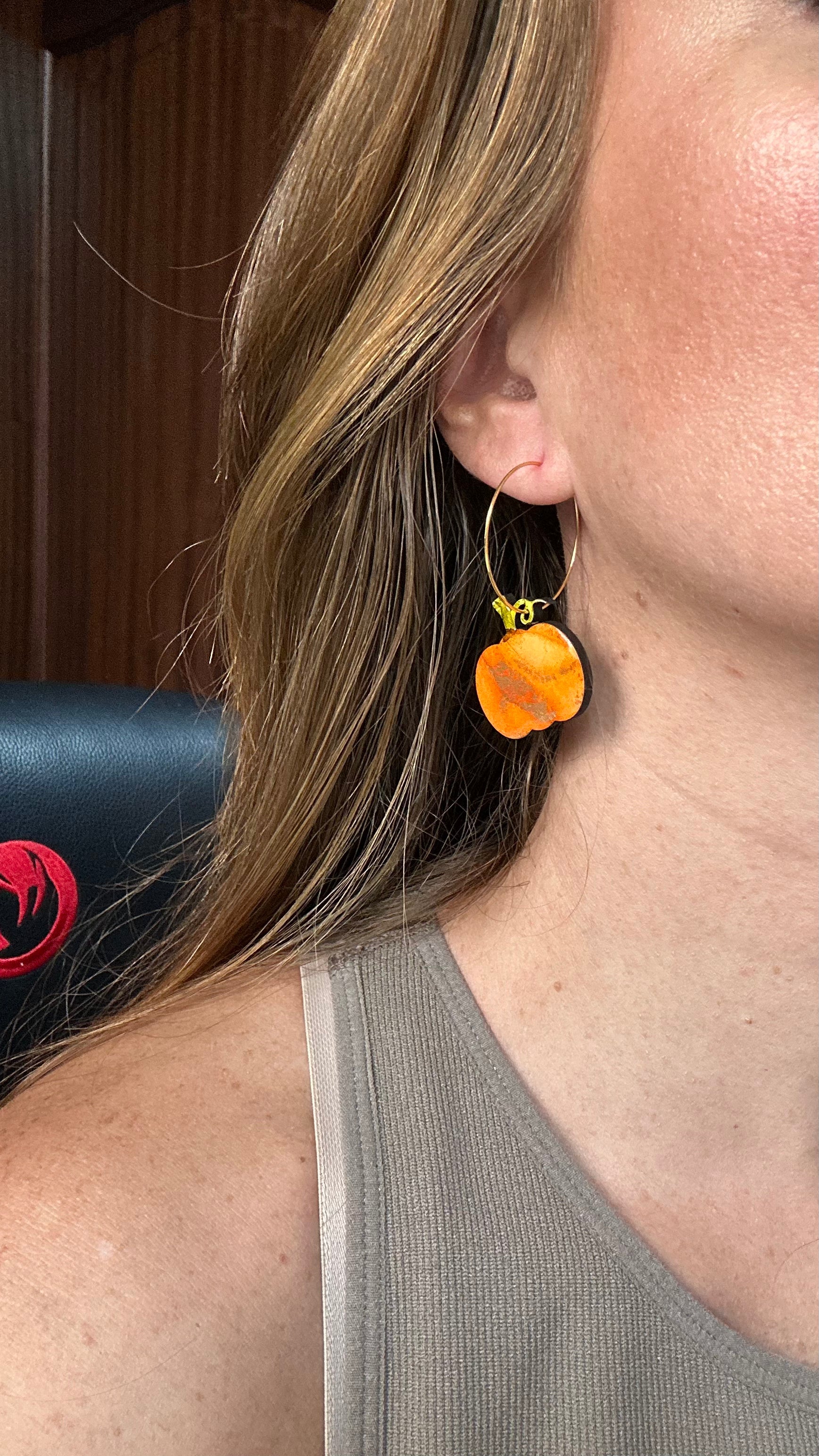 "Luce la magia del otoño con estos pendientes de calabaza pintados a mano 🎃🍂. Cada par es una pieza única e irrepetible, creada con mimo para que encuentres el diseño que más resuene contigo. No hay copias, solo autenticidad: elige los tuyos y celebra Halloween con un toque exclusivo."