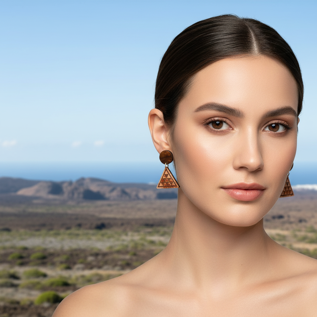 Añade un toque de arte y tradición a tu look con estos pendientes únicos, inspirados en las antiguas pintaderas canarias. Cada pieza está hecha y pintada a mano, lo que convierte a cada par en una pequeña obra de arte irrepetible.