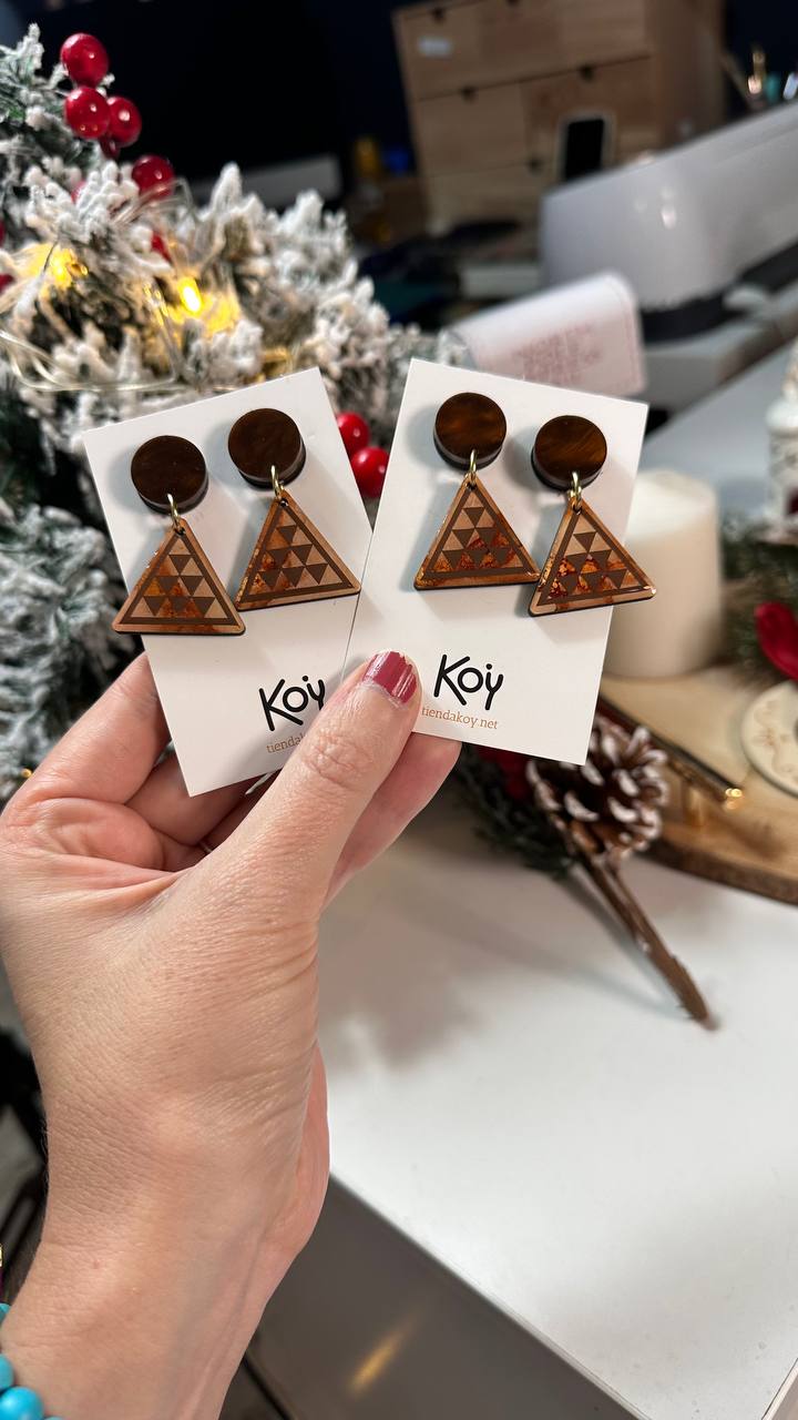 Pendientes de madera pintados a mano – Diseño pintadera triangular