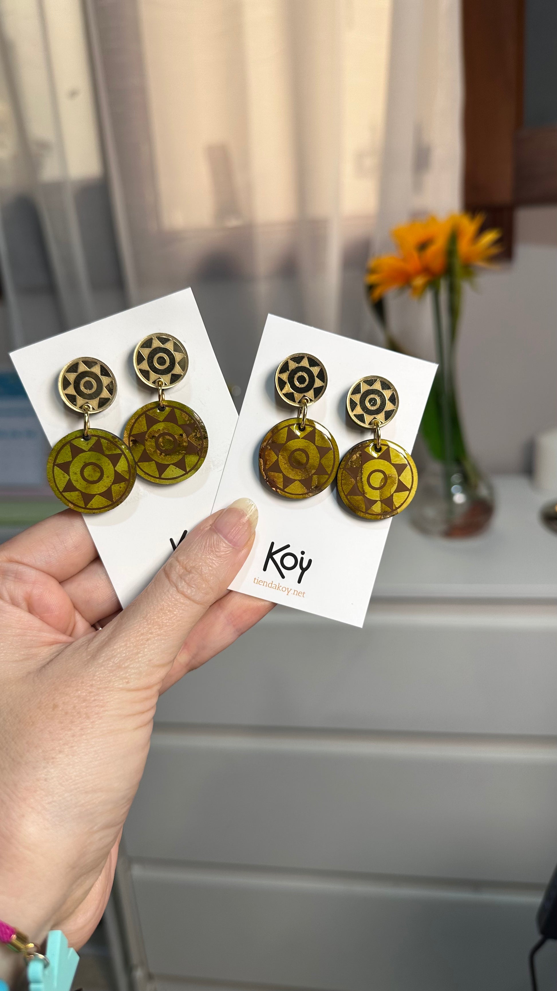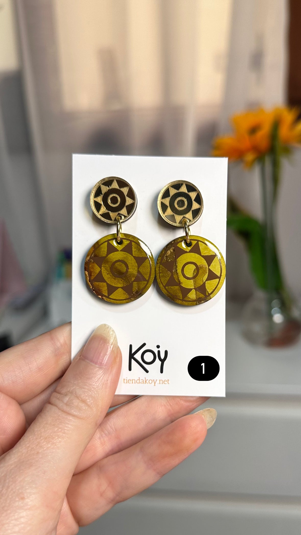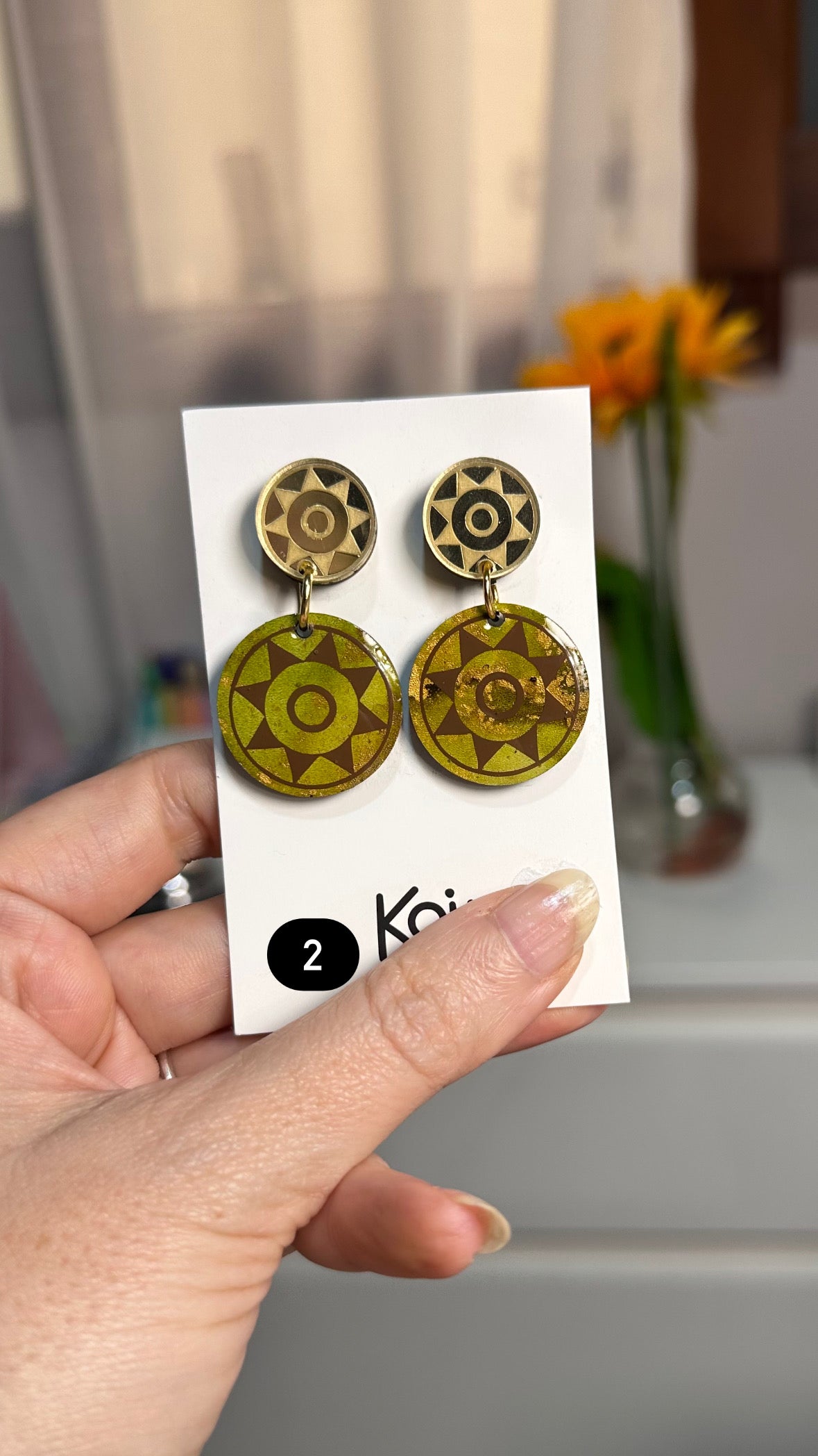 Los botones están hechos con la misma pintadera en metacrilato espejo, dándoles un toque muy especial.