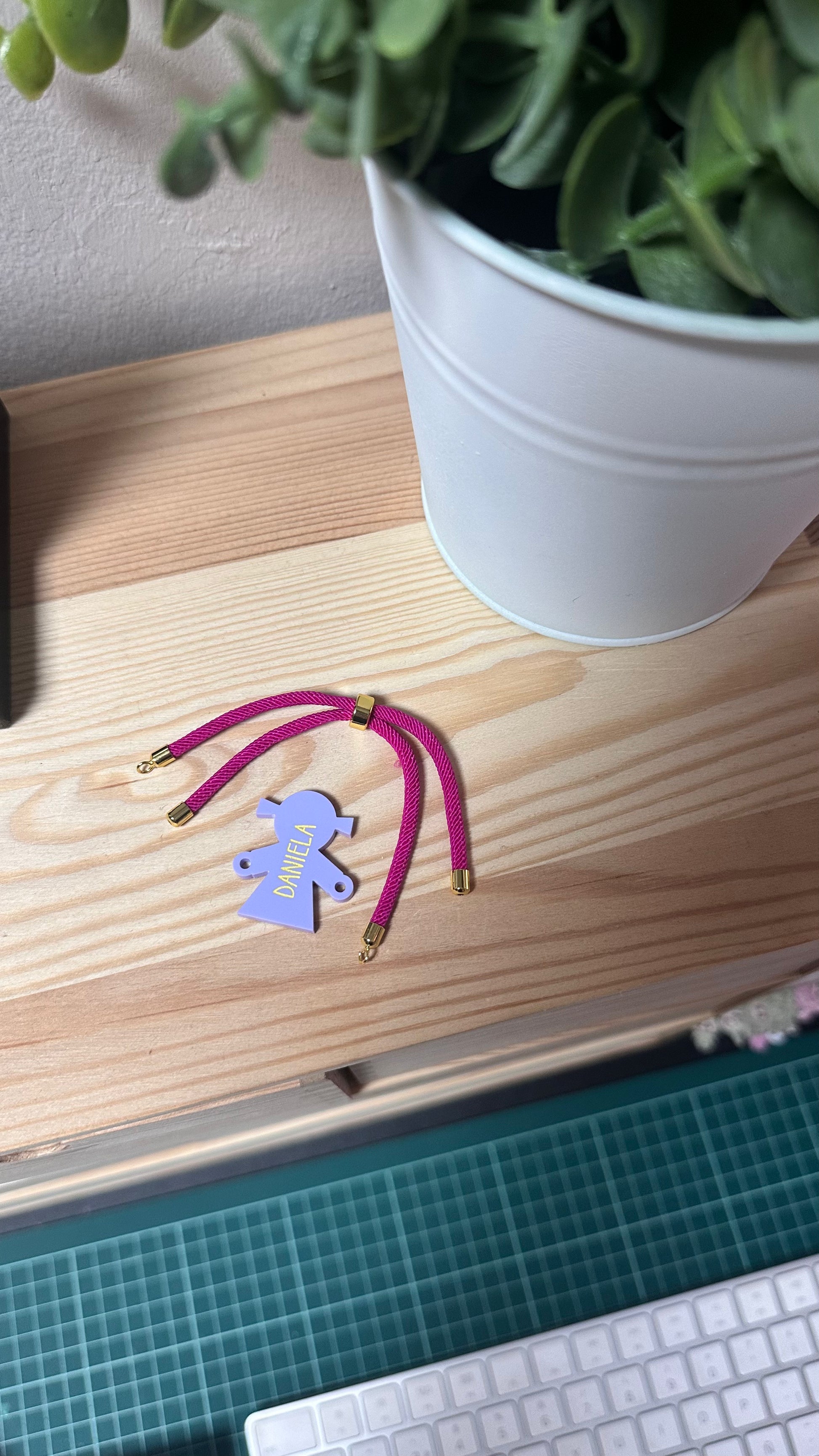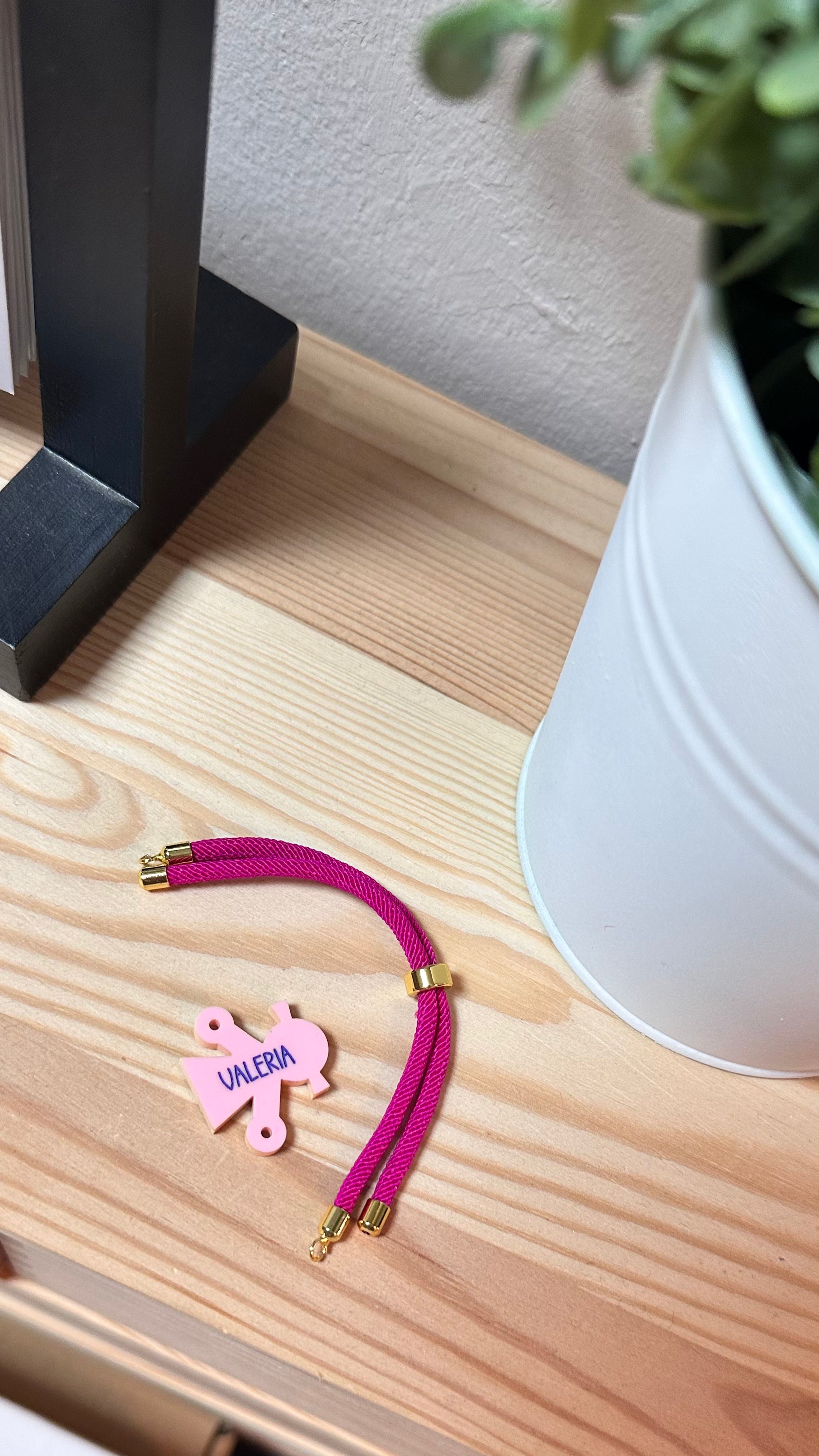 La pulsera cuenta con un cordón ajustable, disponible en varios tonos para adaptarse a tu estilo. Su diseño ligero, moderno y lleno de significado la convierte en un regalo perfecto o en un accesorio para llevar a diario.