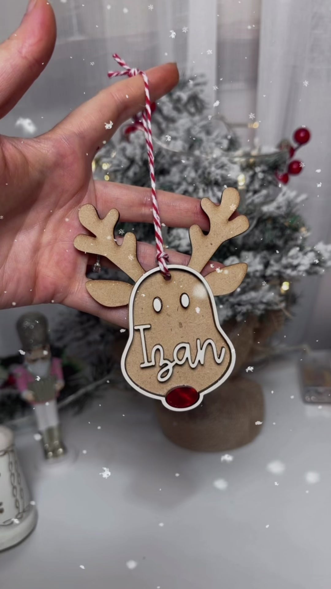 Personalízalo con su nombre (abreviadito, que el reno tiene la carita pequeña) y cuélgalo en el árbol. ¡Es perfecto para crear recuerdos que derriten más que un chocolate caliente! ☕
